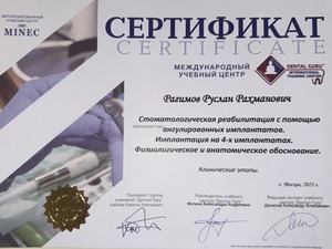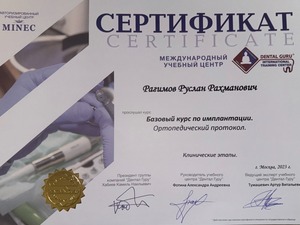 - 2023, Базовый курс по имплантации. Ортопедический протокол. Международный учебный центр Dental Guru;