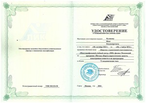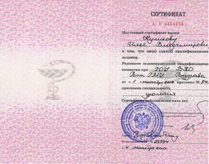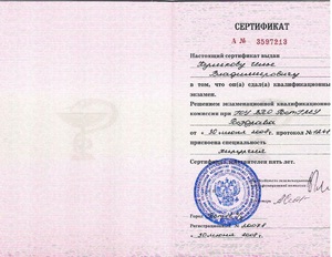 - 2008, интернатура по хирургии, специальность «Врач-хирург»;