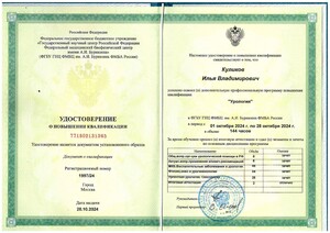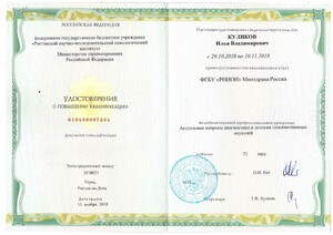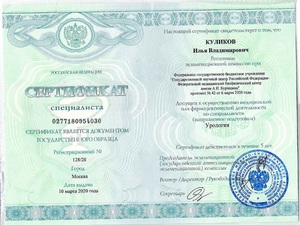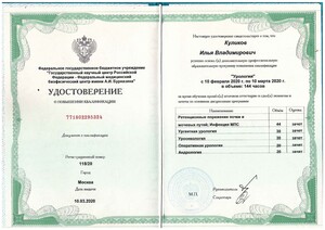 - 2010, ординатура по урологи, специальность «Врач-уролог».