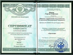 - 2016, НИИ уронефрологии и репродуктивного здоровья человека Первого МГМУ И.М. Сеченова;