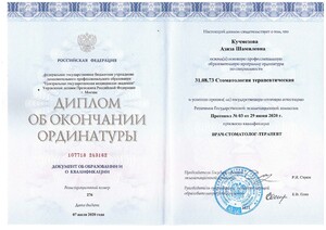 - 2018, Нальчик, Кабардино-Балкарский государственный университет им. Х.М. Бербекова, специальность «Стоматология»;