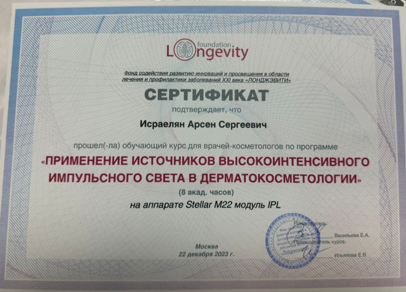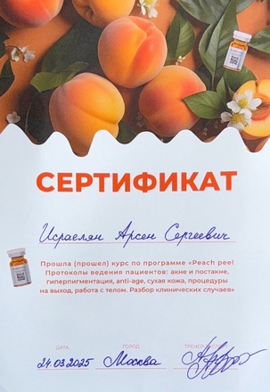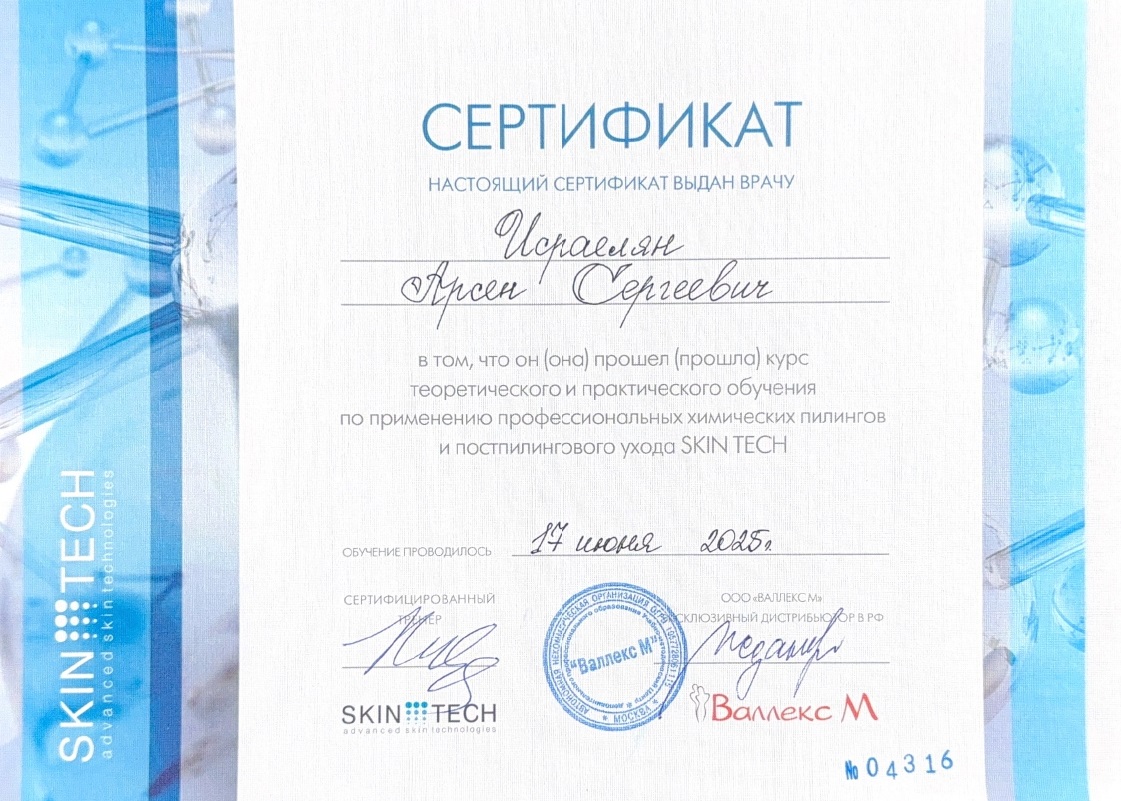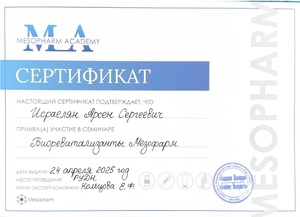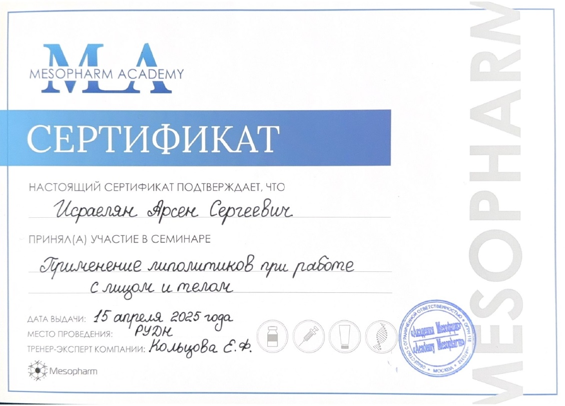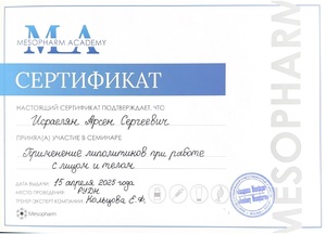 - 2025, Москва, Мелис, курс «Плазмотерапия и технология PRP»;