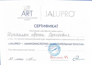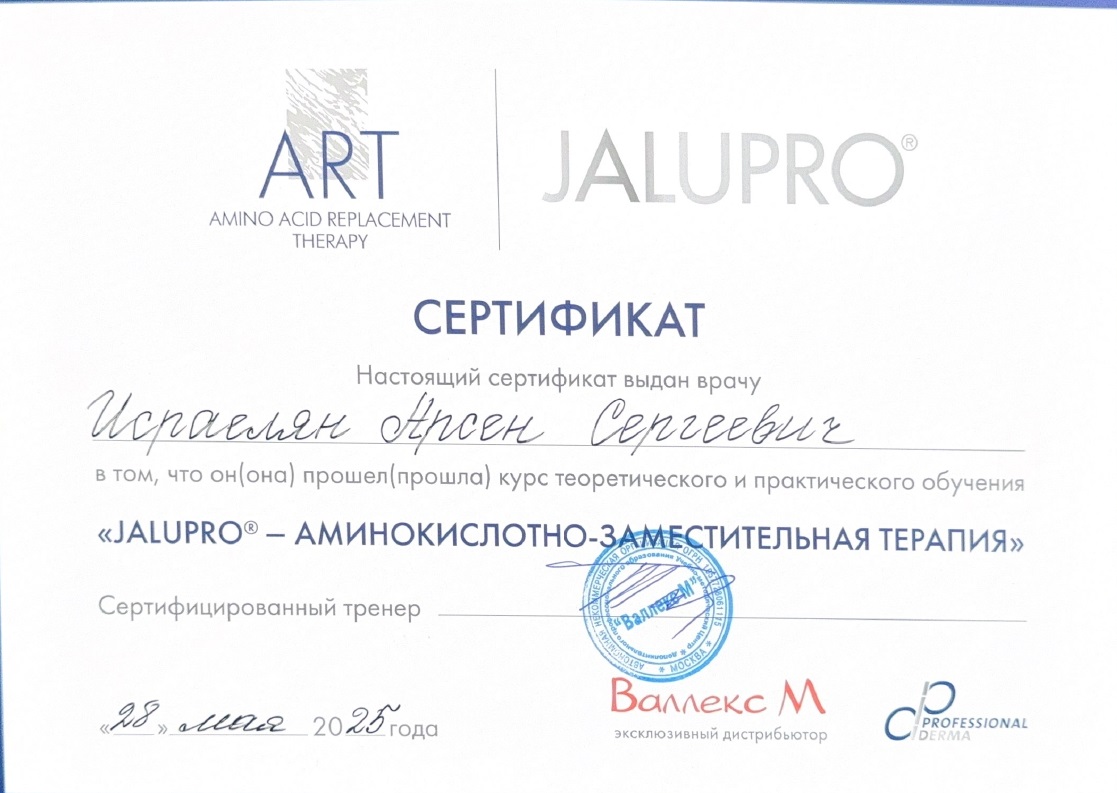 - 2025, Москва, Валлекс М, курс «JALUPRO-биоревитализация нового поколения»;