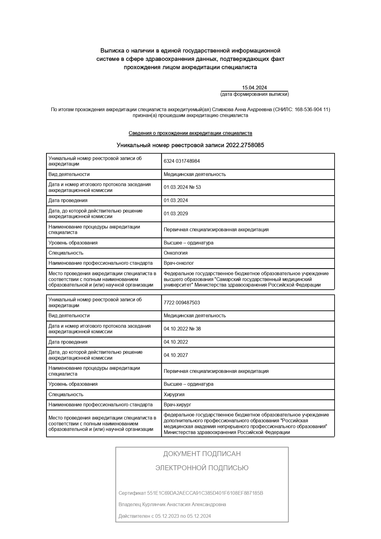 Сливкова Анна Андреевна