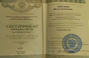 2020, Москва, Российский университет дружбы народов, специальность гастроэнтерология.